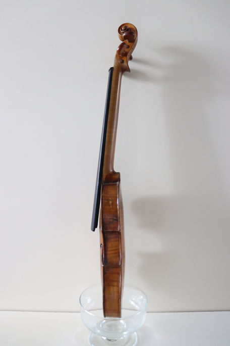 Handwritten in ink without label reads "made by Chas. Har . . . " then signed below.London & Oxfordshire c181Original neck/scroll.Original varnish plentiful.Cracks to front & back (patched) & cracks to rib all require attention.